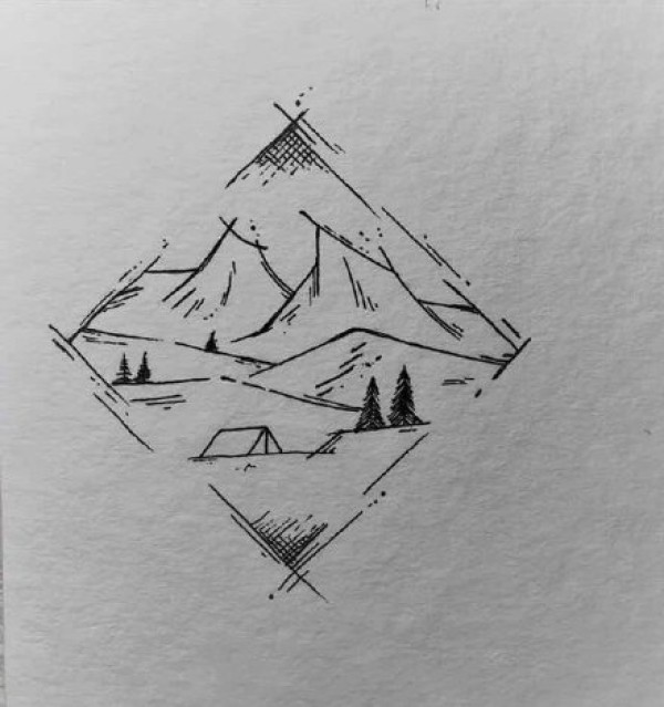 35款三角菱形等几何点刺小风景纹身手稿图片