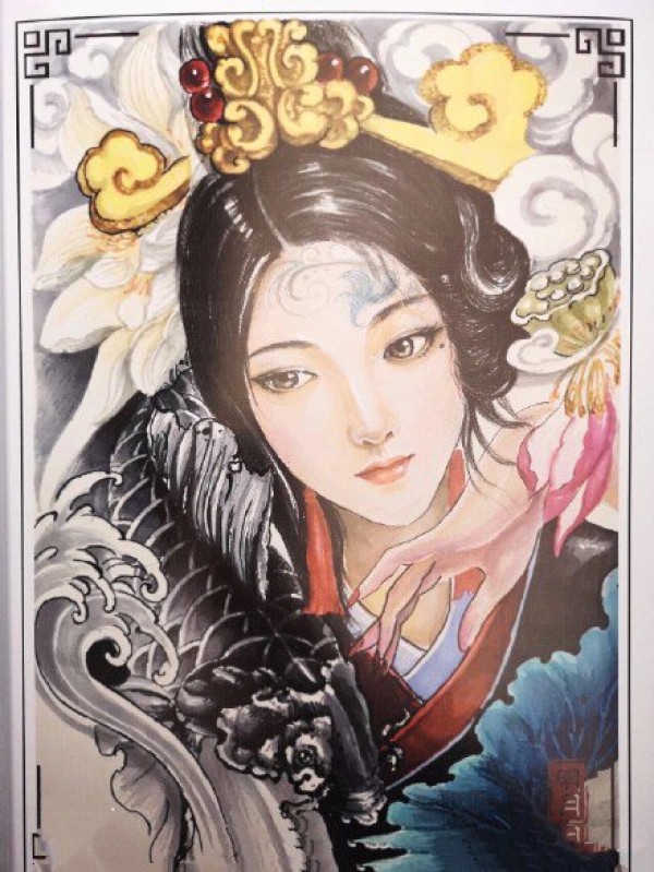 一组明月的艺伎花旦等古风女子纹身手稿图片
