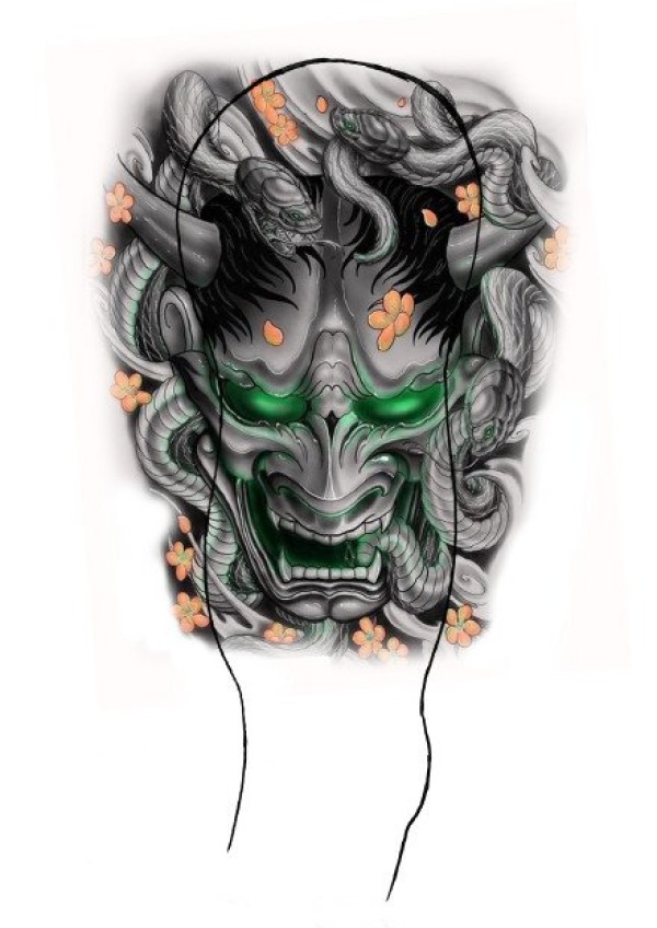 传统艺妓般若纹身图案手稿