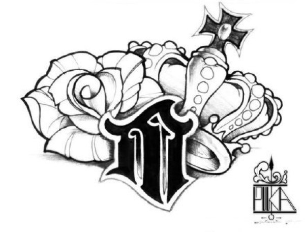 35款创意的黑灰色纹身手稿设计图片