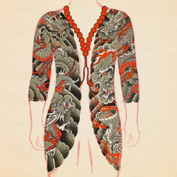 一组满背大气九龙拉棺纹身图案作品和手稿