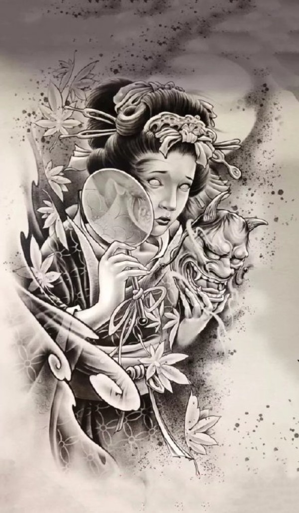 半甲唐狮手稿 传统的9款唐狮主题半甲纹身手稿图片