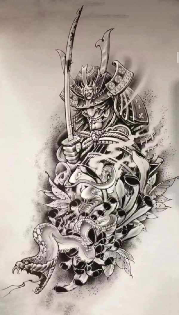 一组满背大气九龙拉棺纹身图案作品和手稿