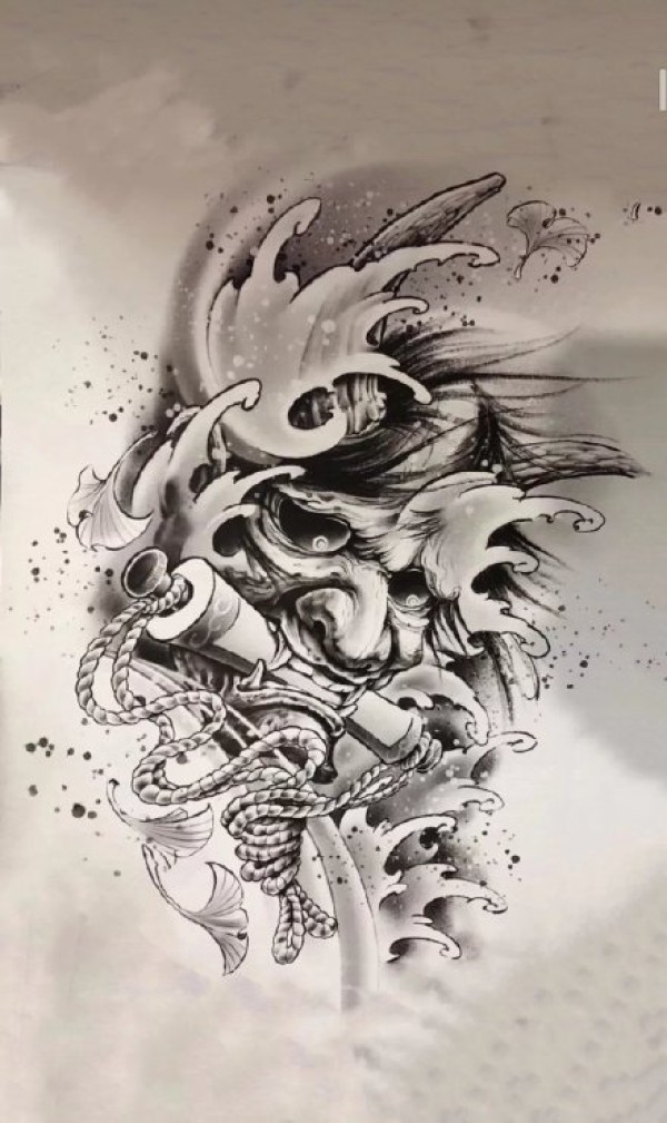 一组满背大气九龙拉棺纹身图案作品和手稿