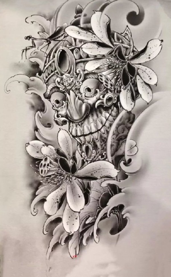 传统艺妓般若纹身图案手稿