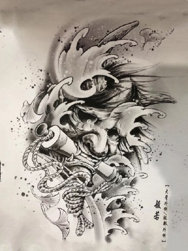 半甲唐狮手稿 传统的9款唐狮主题半甲纹身手稿图片
