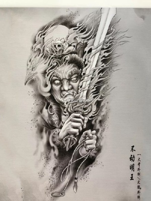 一组满背大气九龙拉棺纹身图案作品和手稿