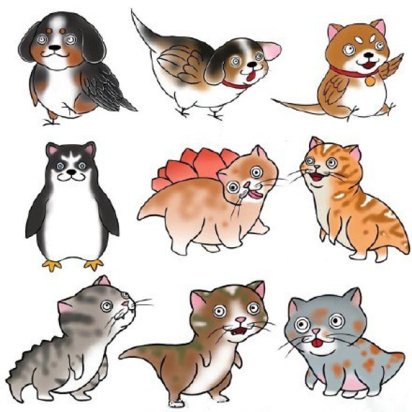 一组日式萌宠主题的动物纹身素材手稿图片
