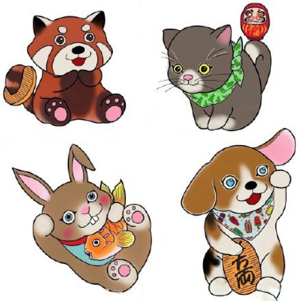 一组日式萌宠主题的动物纹身素材手稿图片