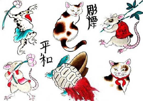 半甲唐狮手稿 传统的9款唐狮主题半甲纹身手稿图片