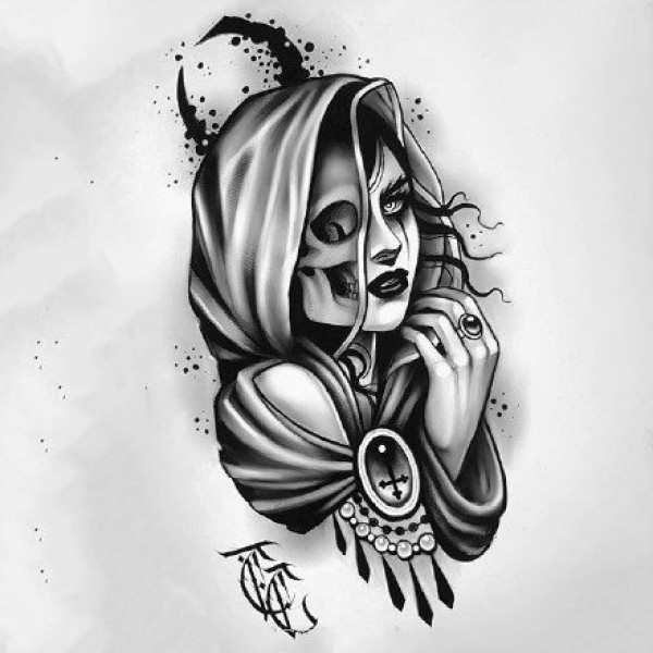 36款暗黑灰女郎主题的纹身手稿图片