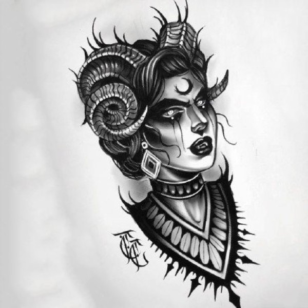36款暗黑灰女郎主题的纹身手稿图片