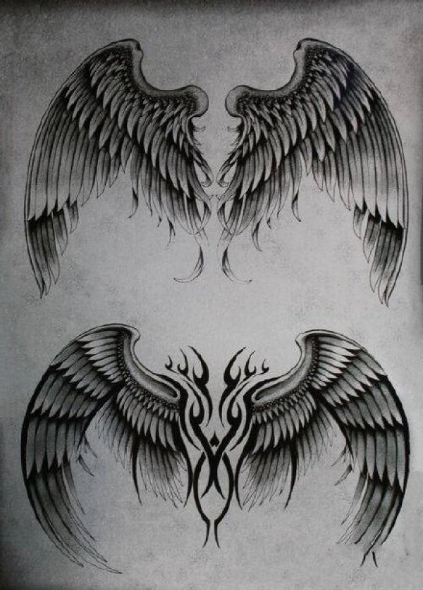 经典的14组翅膀主题的纹身手稿图片