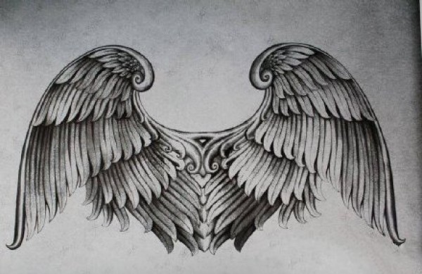 经典的14组翅膀主题的纹身手稿图片
