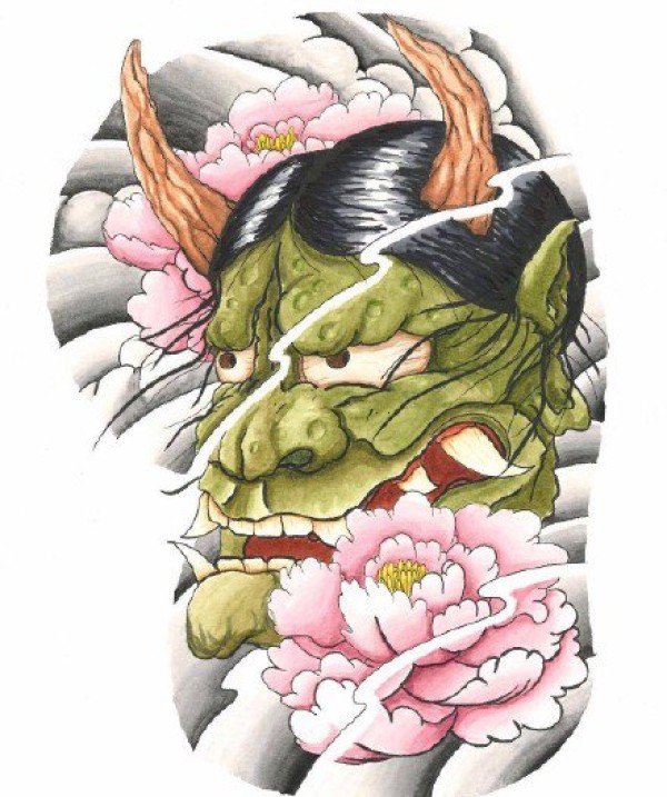 传统艺妓般若纹身图案手稿