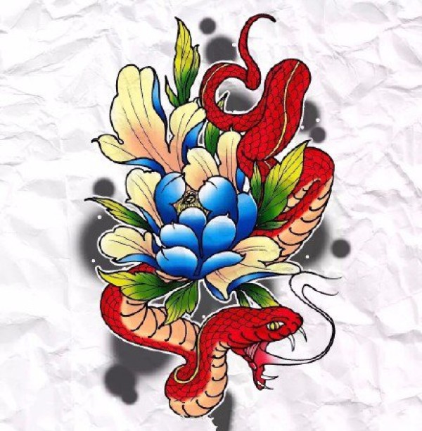 日式风格36款传统的彩色小图纹身手稿图片