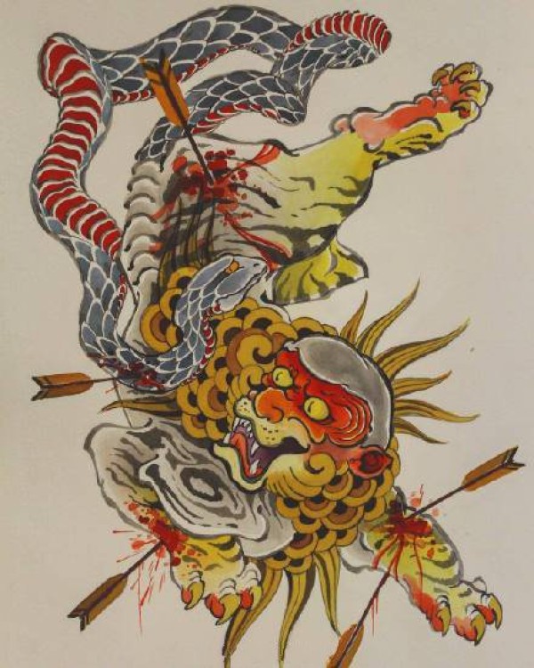 半甲唐狮手稿 传统的9款唐狮主题半甲纹身手稿图片