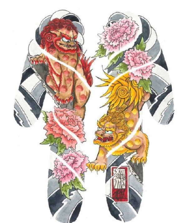 半甲唐狮手稿 传统的9款唐狮主题半甲纹身手稿图片
