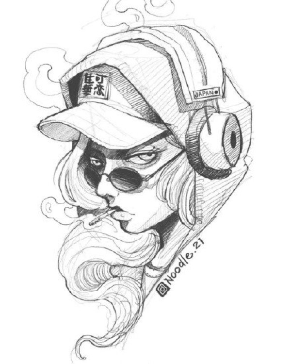 融入现代元素的一组时尚小女郎纹身手稿图片
