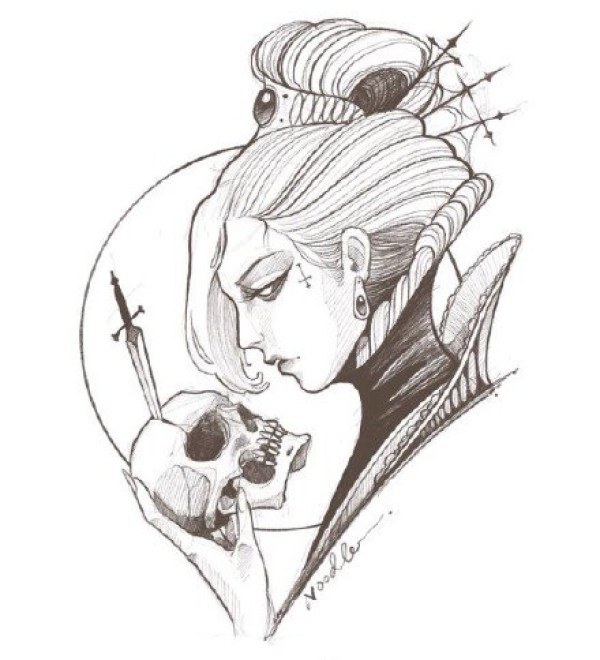 融入现代元素的一组时尚小女郎纹身手稿图片
