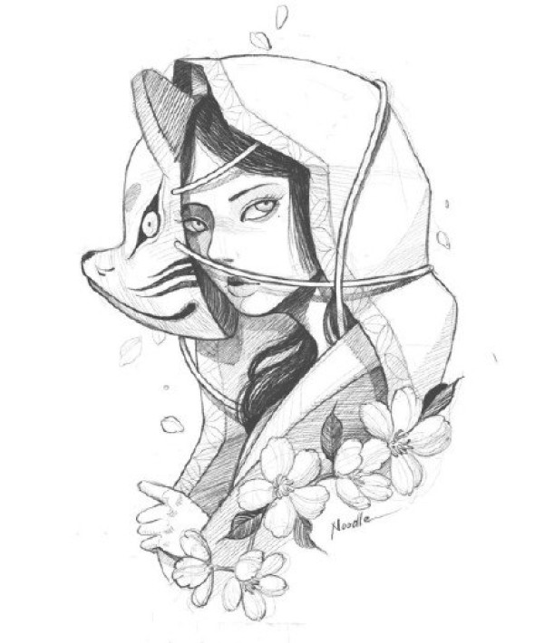 传统艺妓般若纹身图案手稿