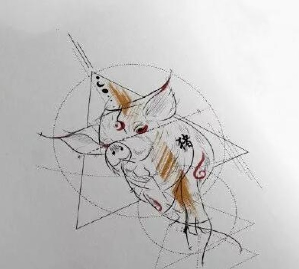 半甲唐狮手稿 传统的9款唐狮主题半甲纹身手稿图片