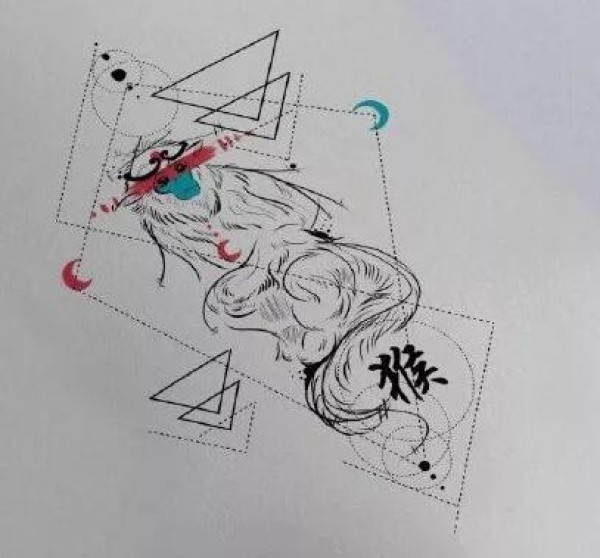 半甲唐狮手稿 传统的9款唐狮主题半甲纹身手稿图片