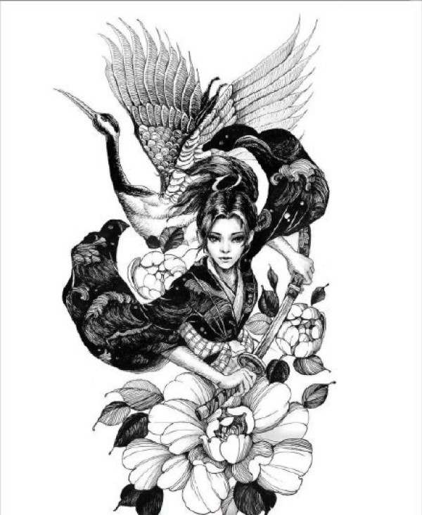 日式女艺伎武士等24款精品女郎纹身手稿图片