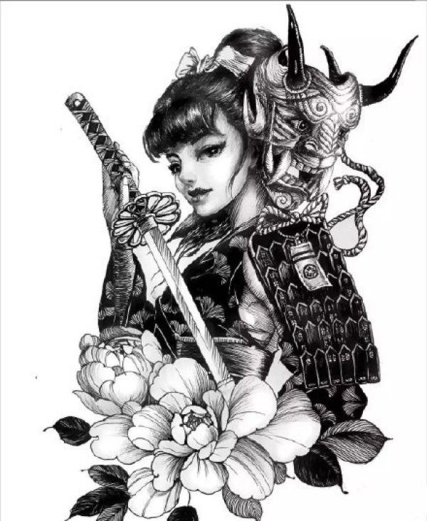 日式女艺伎武士等24款精品女郎纹身手稿图片
