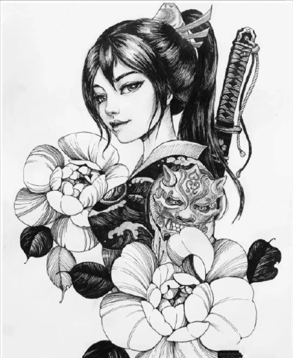 传统艺妓般若纹身图案手稿