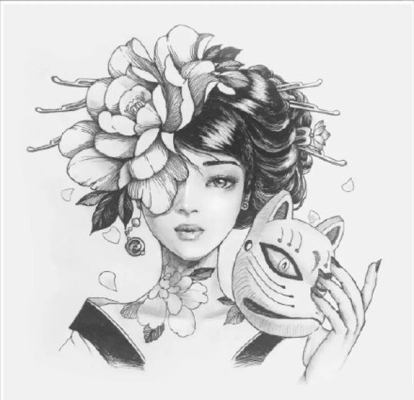 日式女艺伎武士等24款精品女郎纹身手稿图片