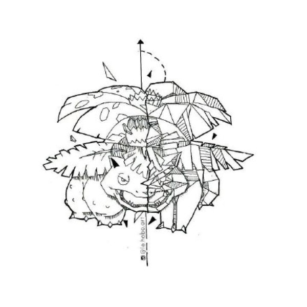 几何搭配卡通动画神奇宝贝的一组纹身手稿图片