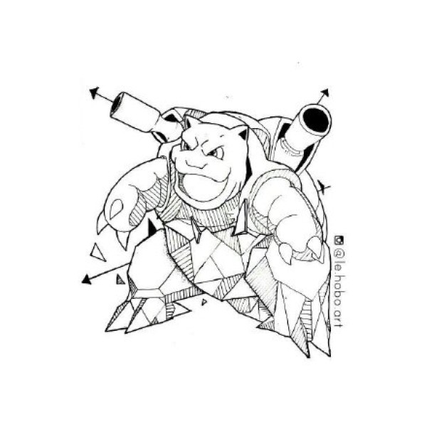 几何搭配卡通动画神奇宝贝的一组纹身手稿图片
