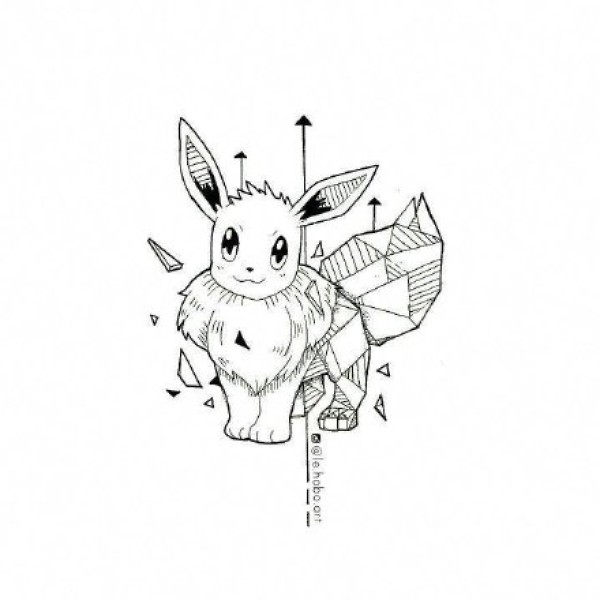 几何搭配卡通动画神奇宝贝的一组纹身手稿图片