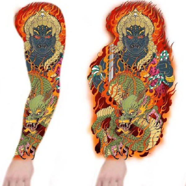 一组满背大气九龙拉棺纹身图案作品和手稿