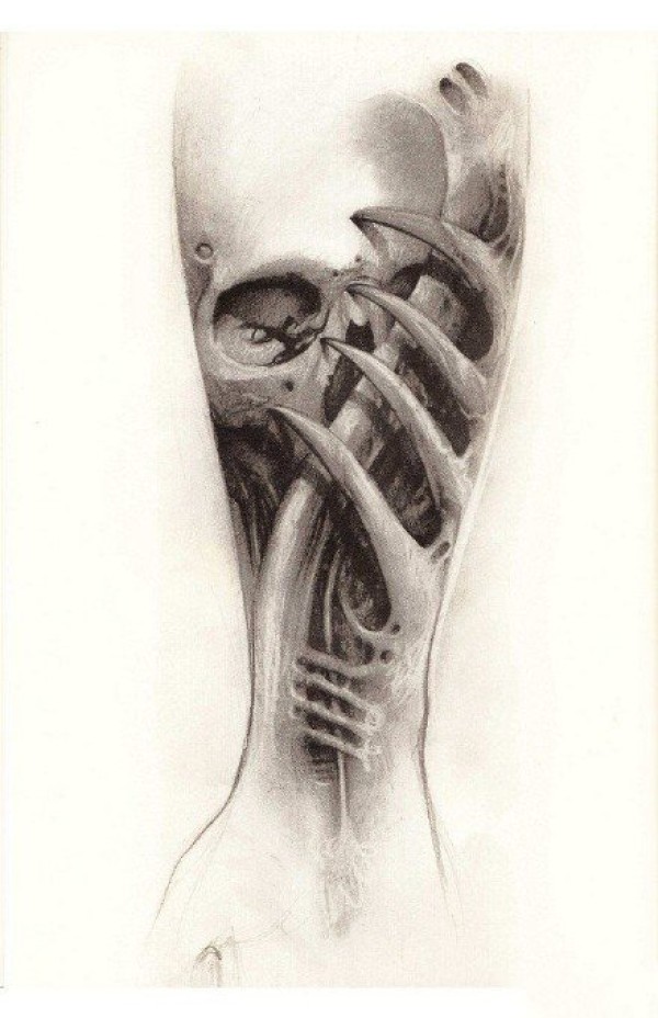 一组3d写实的机械骷髅纹身手稿图片欣赏