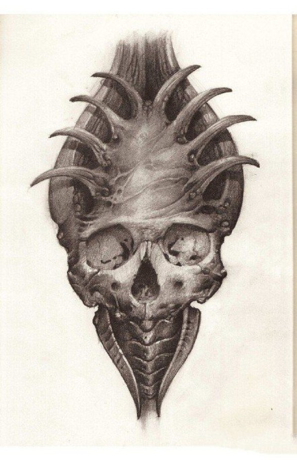 一组3d写实的机械骷髅纹身手稿图片欣赏