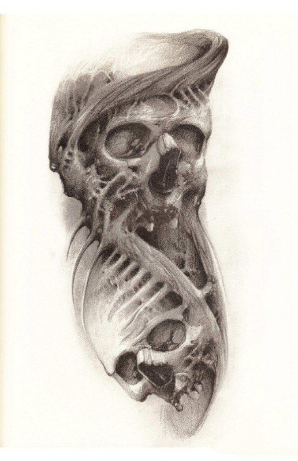 一组3d写实的机械骷髅纹身手稿图片欣赏