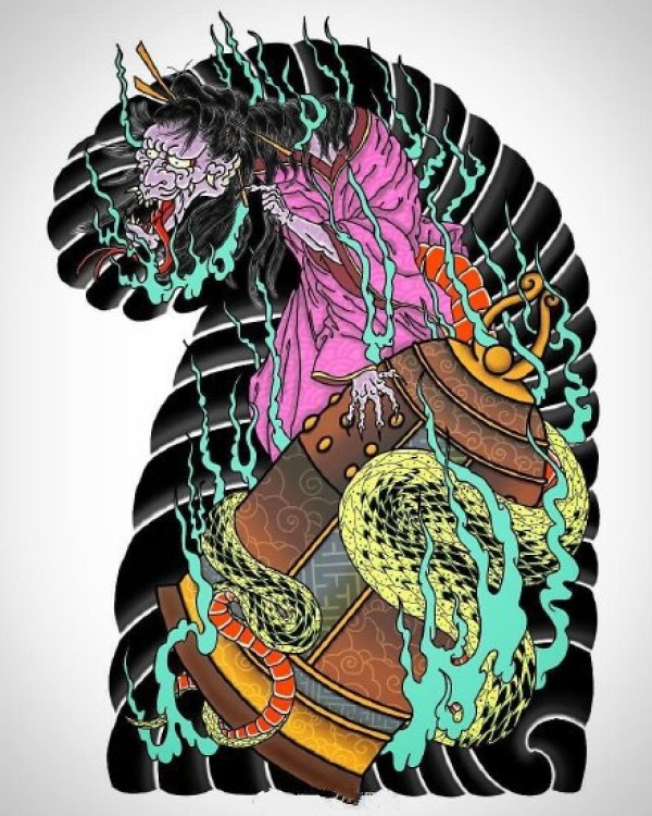 一组满背大气九龙拉棺纹身图案作品和手稿