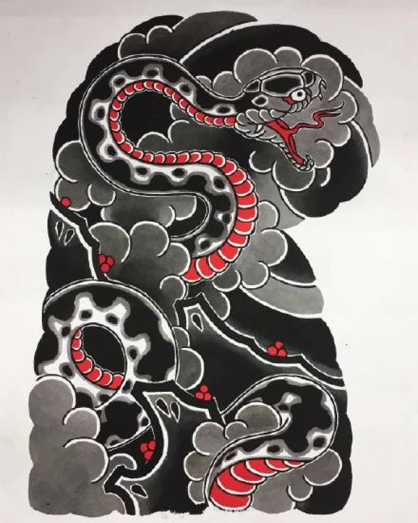 一组满背大气九龙拉棺纹身图案作品和手稿