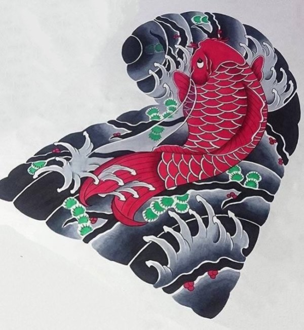 一组满背大气九龙拉棺纹身图案作品和手稿