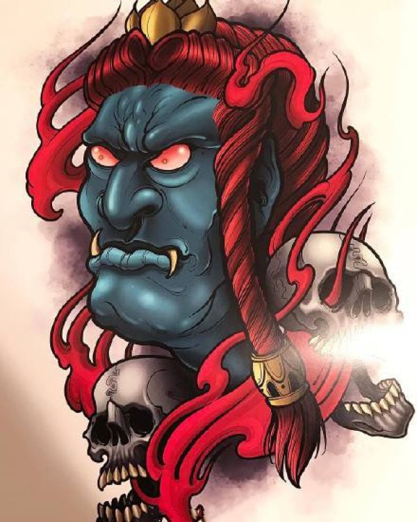 传统艺妓般若纹身图案手稿