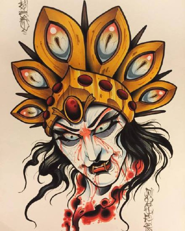 半甲唐狮手稿 传统的9款唐狮主题半甲纹身手稿图片