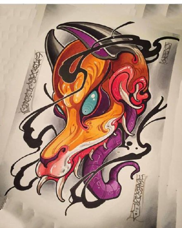 46款school风格的炫彩色纹身手稿图片