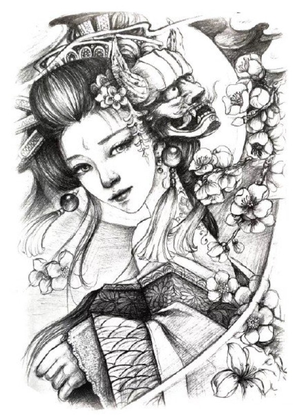 15款艺伎花旦等古风女子纹身手稿素材参考