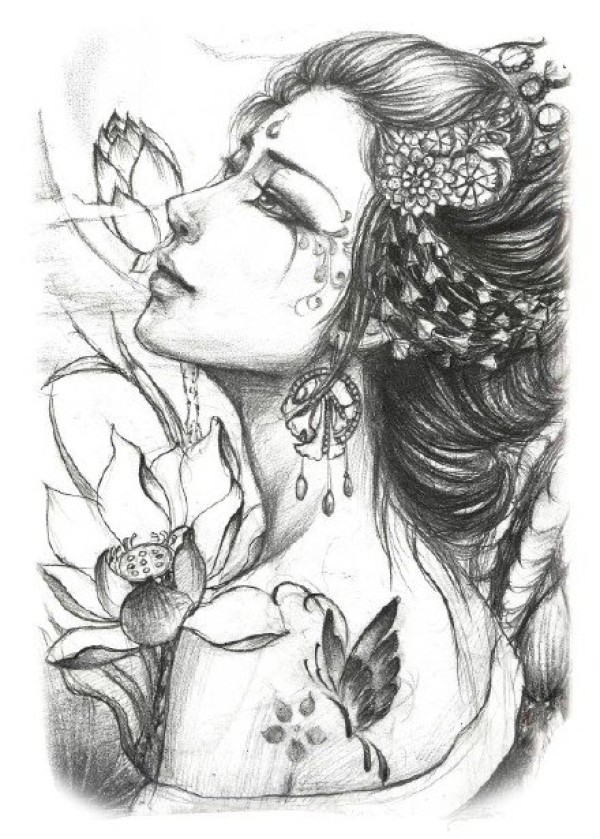 15款艺伎花旦等古风女子纹身手稿素材参考