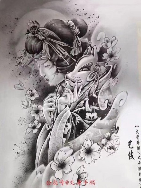 15款艺伎花旦等古风女子纹身手稿素材参考
