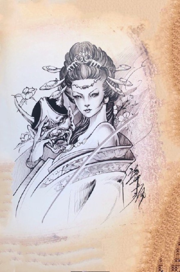 15款艺伎花旦等古风女子纹身手稿素材参考
