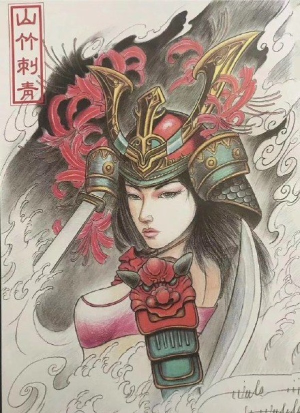 一组日式老传统人物的纹身手稿图片赏析