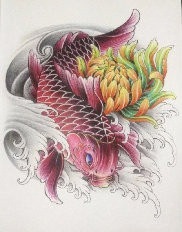 传统的30款鲤鱼纹身手稿图片赏析